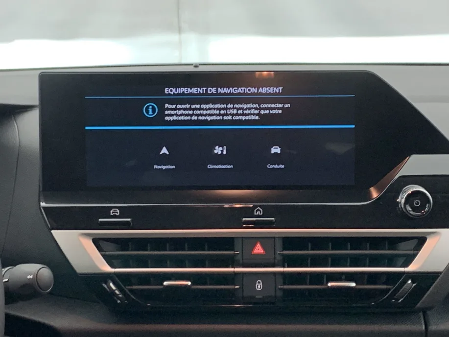 - Ecran central 10″ tactile: – Système audio numérique (DAB) 6 haut-parleurs – Apple CarPlay et Android Auto – Reconnaissance vocale – Kit mains libres Bluetooth – Boîtier télématique : Appel d’urgence et Citroën Assistance