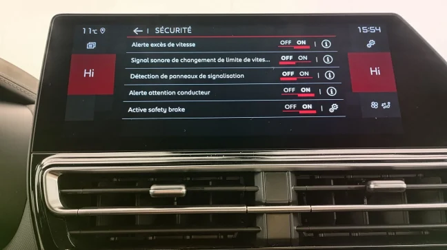 Inserts colorés Noir Brillant sur Airbump et bouclier AV - Pack Safety – Active Safety Brake – Alerte active de Franchissement Involontaire de Ligne – Coffee Break Alert – Reconnaissance étendue des panneaux et recommandation de vitesse – Régulateur-limiteur de vitesse :
