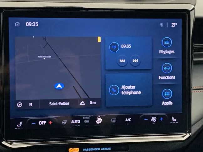 - Système d’infodivertissement SYNC4 avec écran tactile 12″ et commandes vocales, 2 ports USB, navigation, Apple CarPlay et Android auto, 6 haut-parleurs