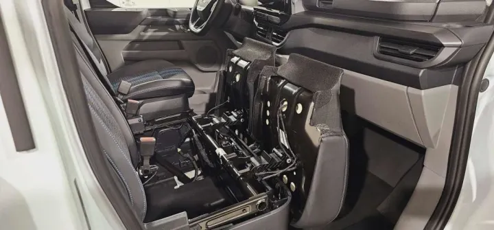 Siège conducteur simple, banquette passager double avec trappe de chargement