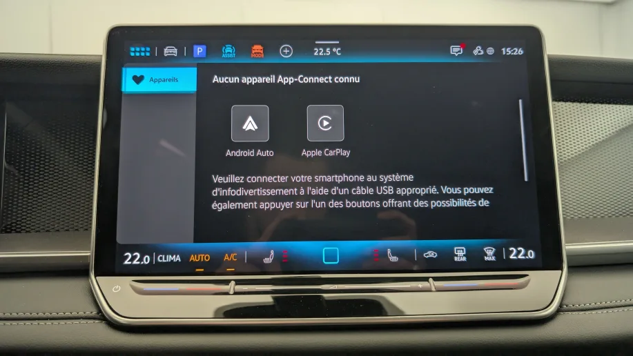 - App-Connect sans fil – affichage et contrôle via l’écran tactile de la voiture, du contenu, des fonctions et des applications compatibles présents sur le Smartphone (compatibilité avec les systèmes Apple CarPlay, Apple CarPlay sans fil, Android Auto, MirrorLink). Seuls les contenus validés et utilisables en «main libre» peuvent fonctionner.